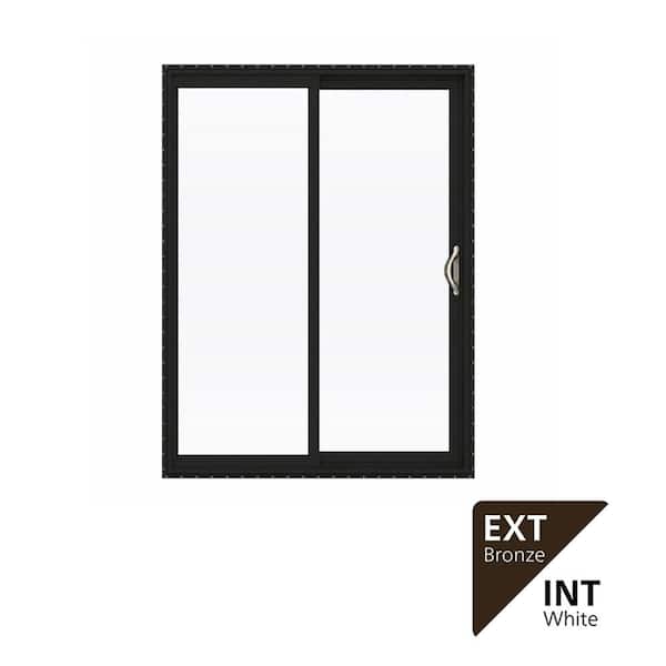 60 in. x 80 in. V-2500 Series Bronze FiniShield Vinyl Right-Hand Full Lite Sliding Patio Door w/White Interior