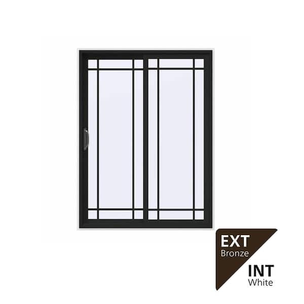 60 in. x 80 in. V-4500 Contemporary Bronze FiniShield Vinyl Left-Hand 9 Lite Sliding Patio Door w/White Interior