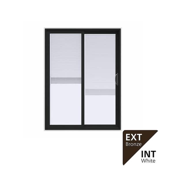 60 in. x 80 in. V-4500 Contemporary Bronze FiniShield Vinyl Right-Hand Full Lite Sliding Patio Door w/ Internal Blinds
