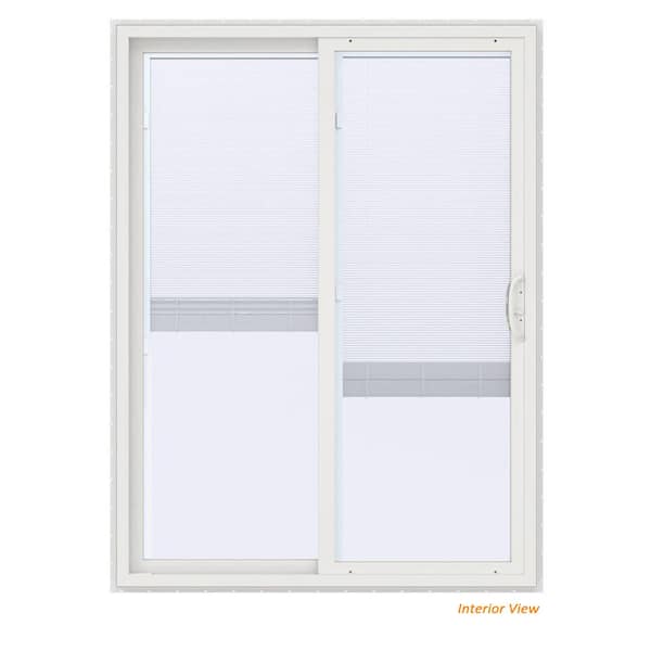 60 in. x 80 in. V-4500 Contemporary White Vinyl Left-Hand Full Lite Sliding Patio Door w/Blinds
