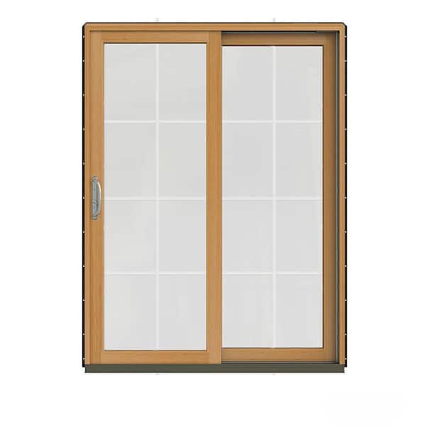 • Aluminum clad wood sliding patio door has satin nickel hardware