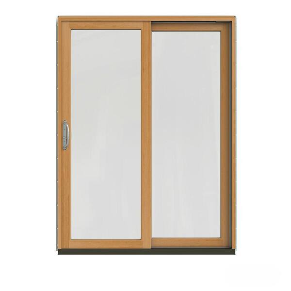 • Aluminum clad wood sliding patio door has satin nickel hardware