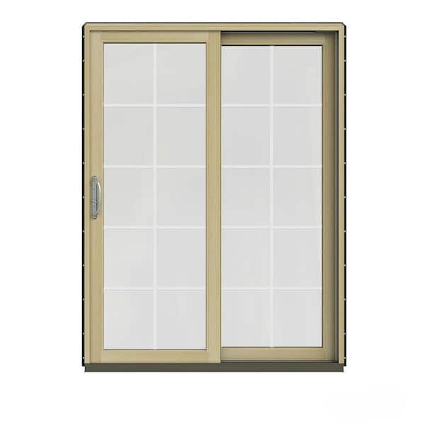 • Aluminum clad wood sliding patio door has satin nickel hardware