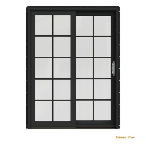 60 in. x 80 in. W-2500 Contemporary Bronze Clad Wood Right-Hand 10 Lite Sliding Patio Door w/Unfinished Interior