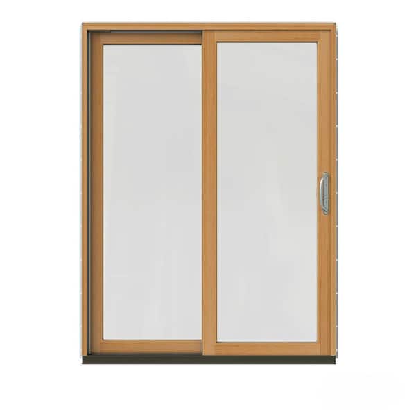 • Aluminum clad wood sliding patio door has satin nickel hardware