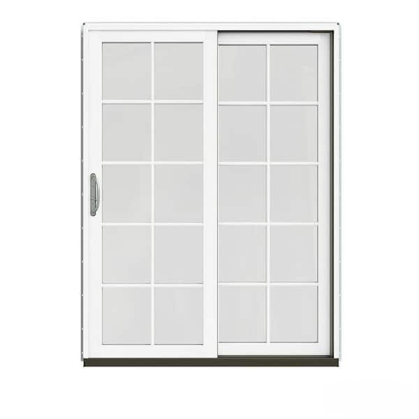 60 in. x 80 in. W-2500 Contemporary Vanilla Clad Wood Right-Hand 10 Lite Sliding Patio Door w/White Paint Interior