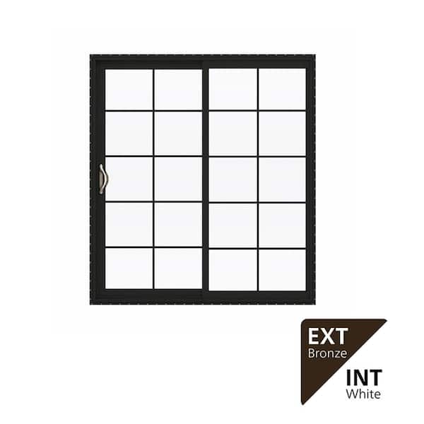 72 in. x 80 in. V-2500 Series Bronze FiniShield Vinyl Left-Hand 10 Lite Sliding Patio Door w/White Interior