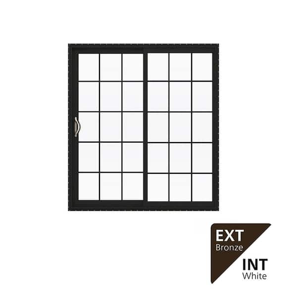 72 in. x 80 in. V-2500 Series Bronze FiniShield Vinyl Left-Hand 15 Lite Sliding Patio Door w/White Interior