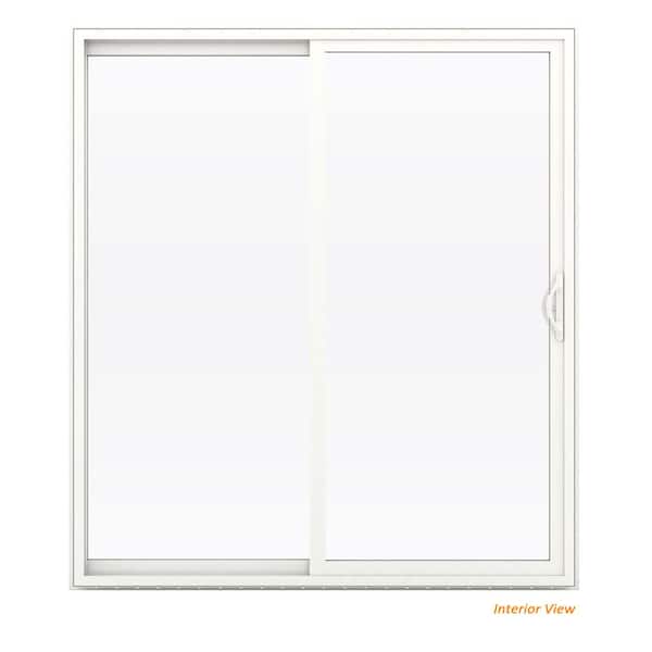 72 in. x 80 in. V-2500 Series Bronze FiniShield Vinyl Left-Hand Full Lite Sliding Patio Door w/White Interior
