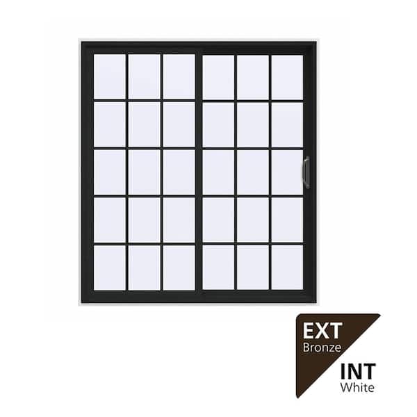 72 in. x 80 in. V-4500 Contemporary Bronze FiniShield Vinyl Right-Hand 15 Lite Sliding Patio Door w/White Interior