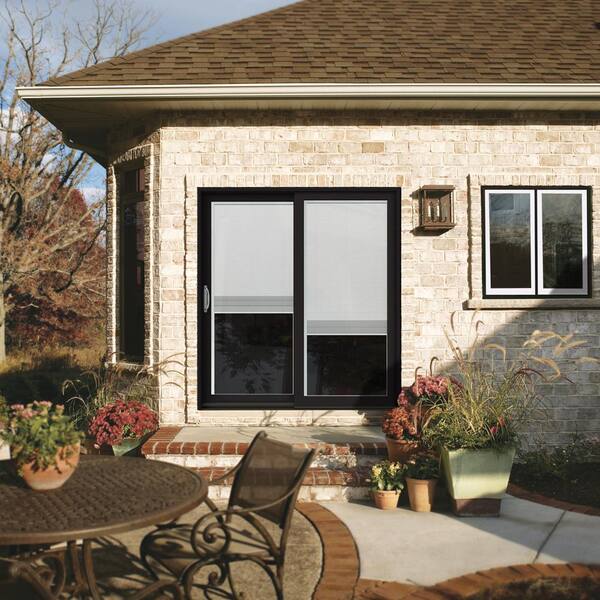 • Aluminum clad wood sliding patio door has satin nickel hardware