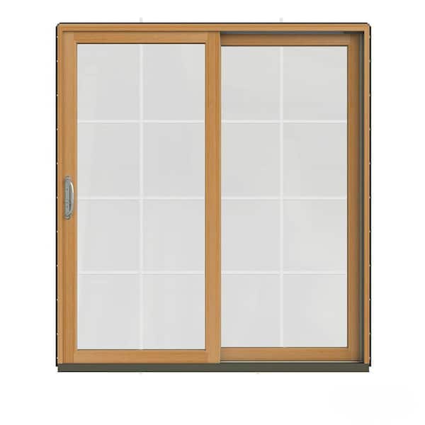 • Aluminum clad wood sliding patio door has satin nickel hardware