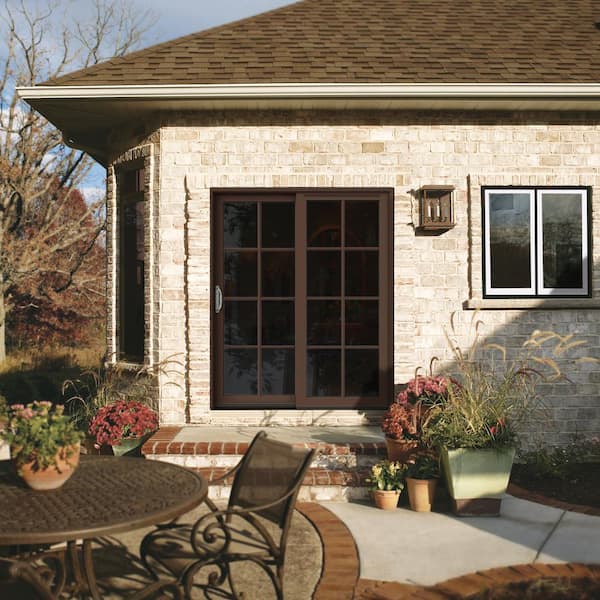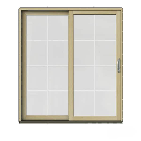 • Aluminum clad wood sliding patio door has satin nickel hardware