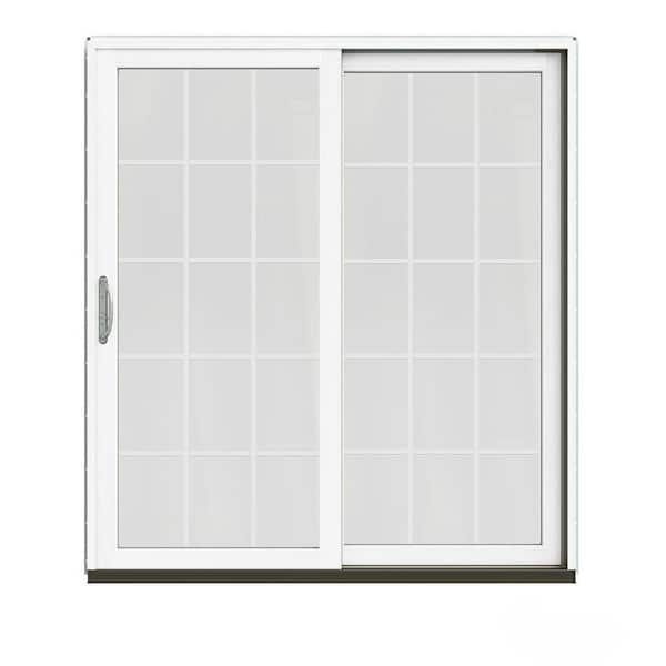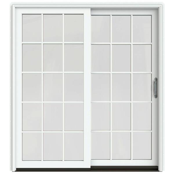 72 in. x 80 in. W-2500 Contemporary White Clad Wood Right-Hand 15 Lite Sliding Patio Door w/White Paint Interior