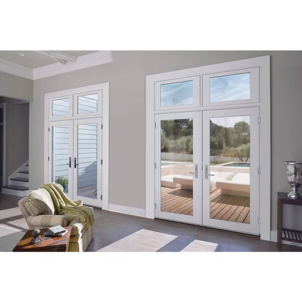 72 in. x 80 in. W-5500 White Clad Wood Left-Hand Full Lite French Patio Door w/White Paint Interior