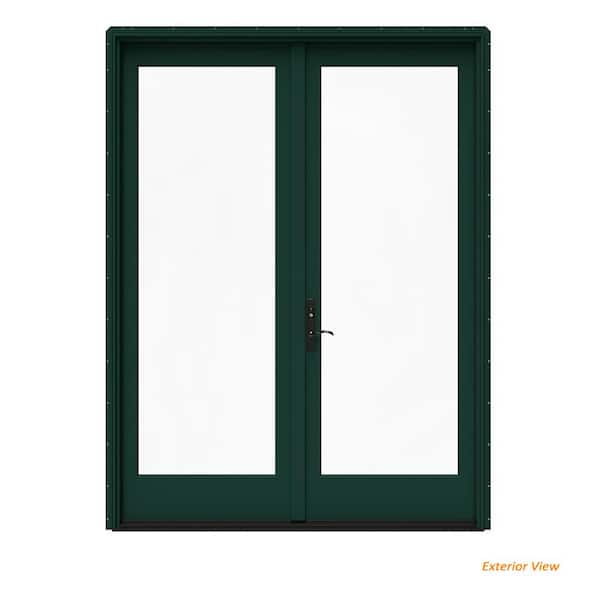 72 in. x 96 in. W-5500 Contemporary Green Clad Wood Right-Hand Full Lite French Patio Door w/White Paint Interior