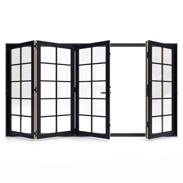 W5500 124 in. x 80 in. Black Right Hand/Outswing Aluminum Clad Wood 4-Panel Prehung Folding Patio Door w/10-Lite grid