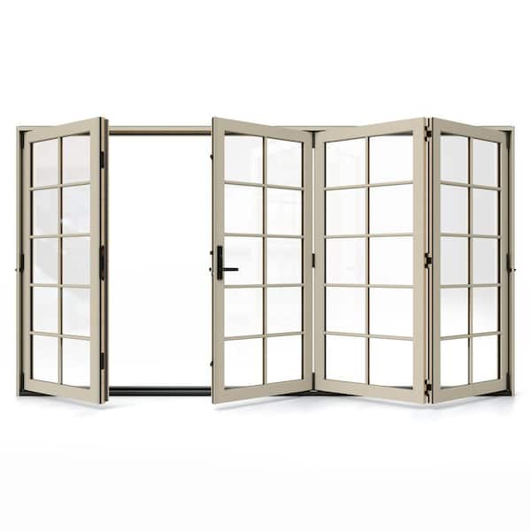 W5500 124 in. x 80 in. Desert Sand LeftHand/Outswing Aluminum CladWood 4-Panel Prehung Folding Patio Door w/10-Lite Grid