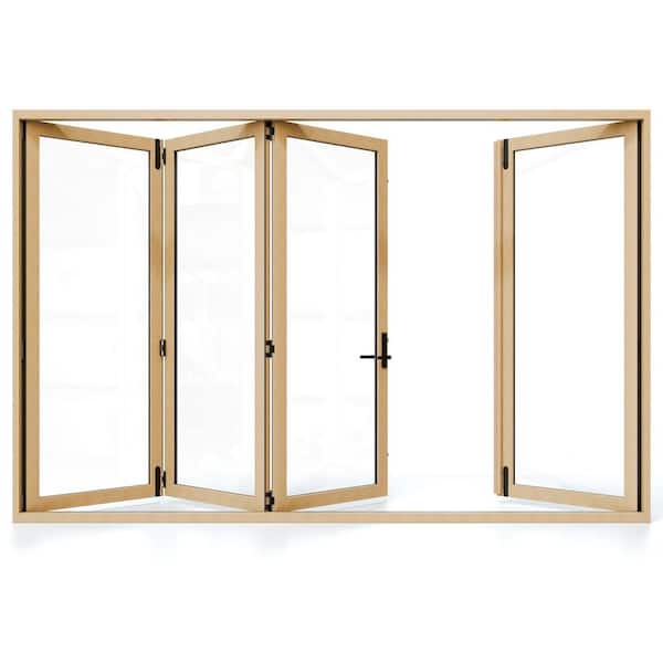 W5500 124 in. x 96 in. Silver Left Hand/Outswing Aluminum Folding Patio Door Clad Wood 4-Panel Prehung
