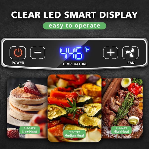 104 sq. in.Black indoor grill with Turbo Smoke Extractor, Tempered Glass Lid