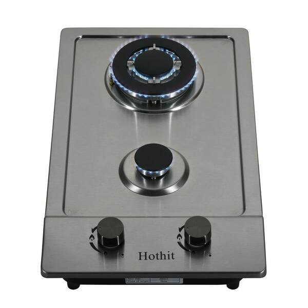12 in. 2 Burners Recessed Gas Cooktop in Stainless Steel, LPG/NG Dual Fuel Gas Stove Top With Thermocouple