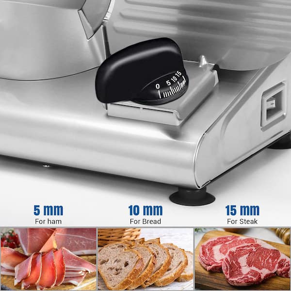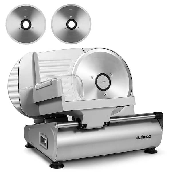 200-Watt Silver Electric Deli Food Slicer with 2-7.5 ft. Removable Stainless-Steel Blades and Pusher