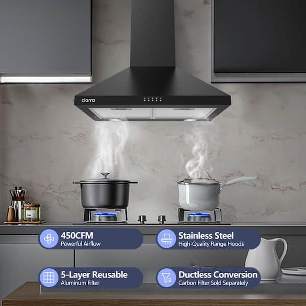 CIARRA Range Hood, 5-layer aluminum mesh filter.