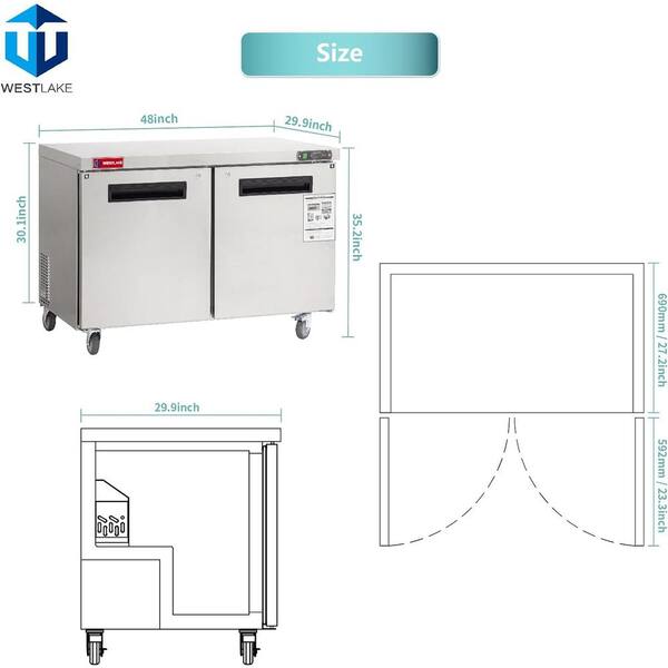 30 in. 11.9 cu. ft. Commercial Refrigerator 2-Solid Door Automatic Defrosting Stainless Steel