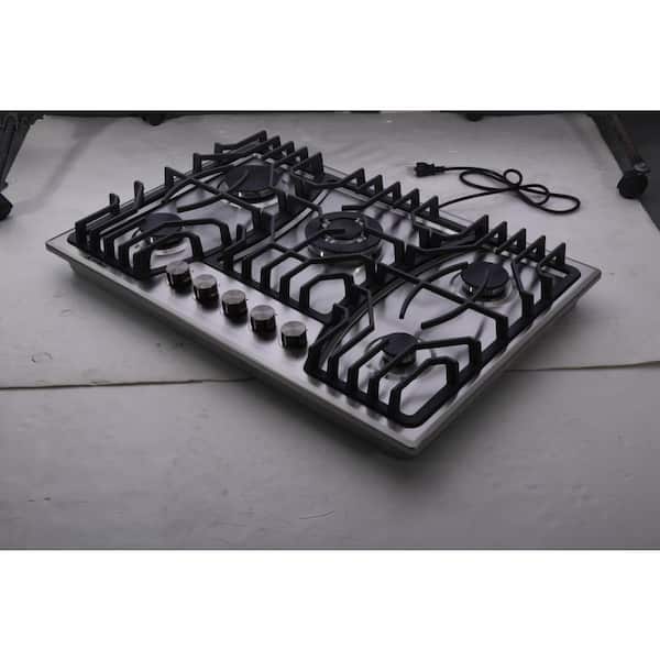 30 in.5 Burners Recessed Gas Cooktop in Stainless Steel with cast iron stove