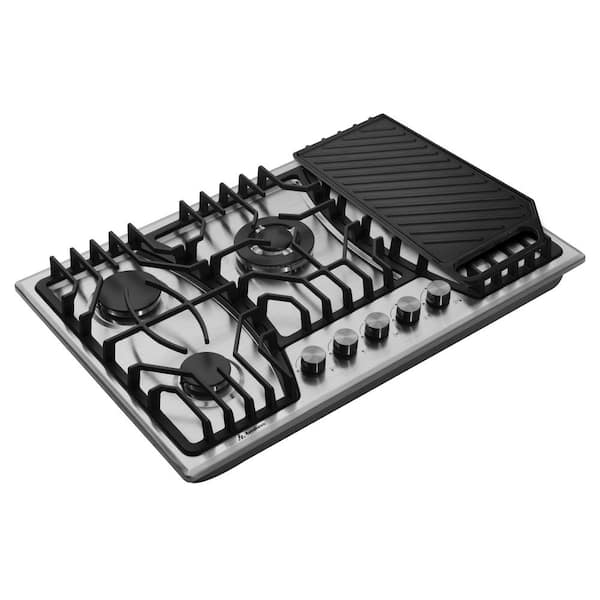 30 in. 5 Burners Recessed Gas Cooktop in stainless with LPG/NG Dual Fuel With Cast iron baking pan