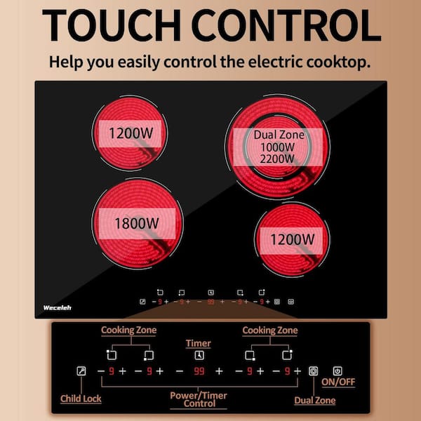 30 in. Electric 4 Elements Cooktop Surface Type in Black with Digital Sensor Touch Control