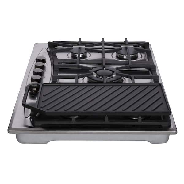 30 in. Stainless Steel Solid Disk Gas Cooktop with Griddle, 5-Burner Gas Cooktop, with LPG/NG Dual Fuel Stainless Steel