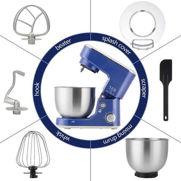 5 qt. 3-Speed Dark Blue Stand Mixer with Stainless Steel Bowl, Dough Hook, Mixing Beater and Whisk, Splash Guard