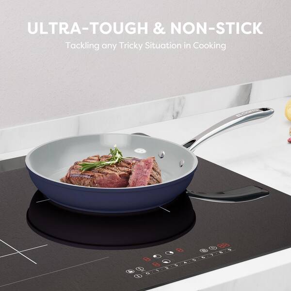 7-Piece Ceramic Nonstick Cookware Set in Dark Blue, Frying Pan, Saute Pan, Saucepan, Dutch Oven