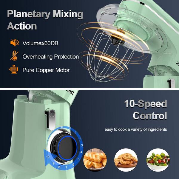 BigChef 6.5 Qt. 650-Watt 10-Speed Light Green Stand Mixer with Dough Hook, Whisk and Beater