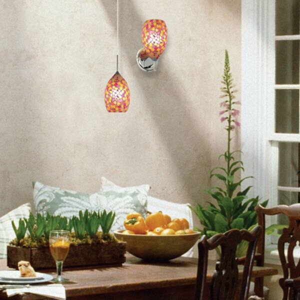 1-Light Low-Voltage Green/Yellow Low Companion Wall Sconce with Mosaic Glass