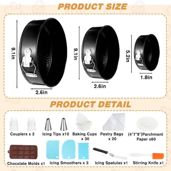Springform Pan Non-Stick Bakeware Set with Piping Bags Tips Decorating Tools Parchment Paper 131pcs Kit