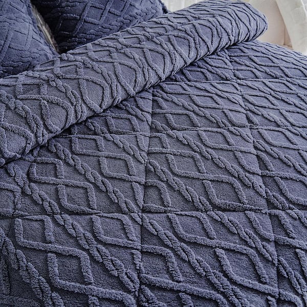 3-Piece Slate Fluffy Sherpa Fleece Comforter Set Tufted Bedding Comforter Set 75 in. x 83 in.