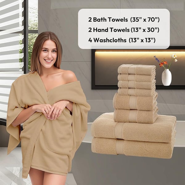 8-Pieces Camel Cotton Bath Towel Set