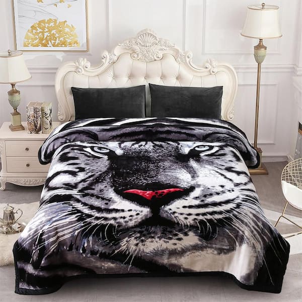 Black Tiger 2-Ply Reversible Polyester Fleece Mink 85 in. x 95 in. 10 lbs. Winter Blanket