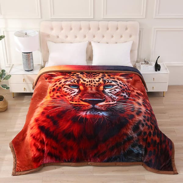 Leopard 3-Ply Reversible Polyester Fleece Blanket for Winter 85 in. x 93 in. 8 lbs.