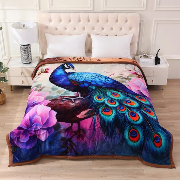 Peacock 3-Ply Reversible Polyester Fleece Blanket for Winter 85 in. x 93 in. 8 lbs.