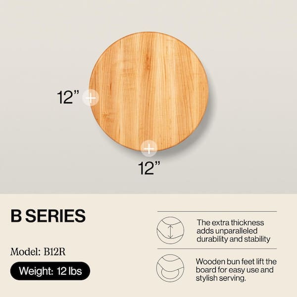 12 in. x 12 in. Round Wooden Edge Grain Cutting Board