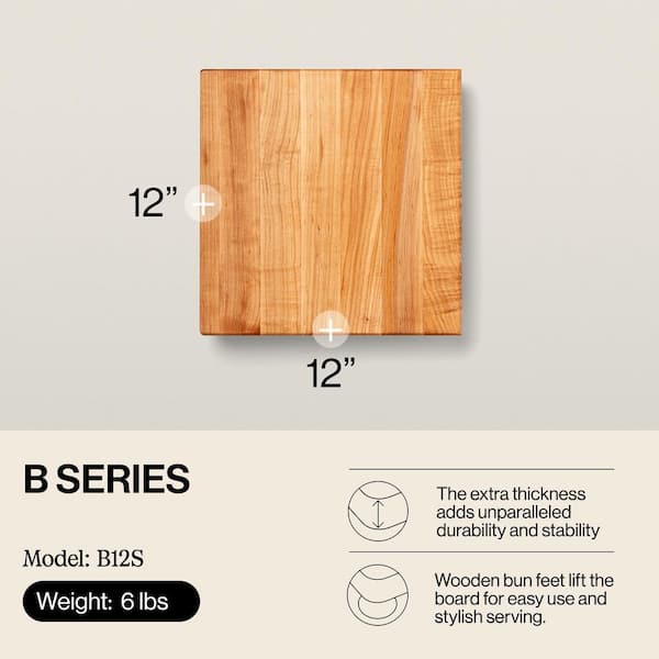 12 in. x 12 in. Square Small Maple Wood Edge Grain Cutting Board for Kitchen
