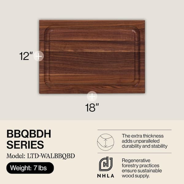 Block 12 in. x 18 in. Rectangular Walnut Wood Edge Grain Cutting Board with Deep Juice Groove