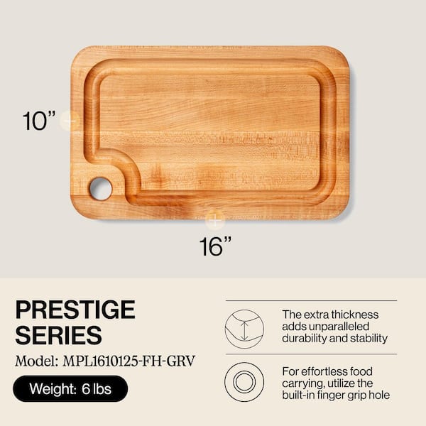 Block 16 in. x 10 in. Rectangle Maple Wood Cutting Board with Juice Groove, Maple