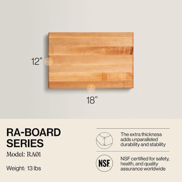 Block 18 in. x 12 in. Rectangular Maple Wood Edge Grain Reversible Cutting Board
