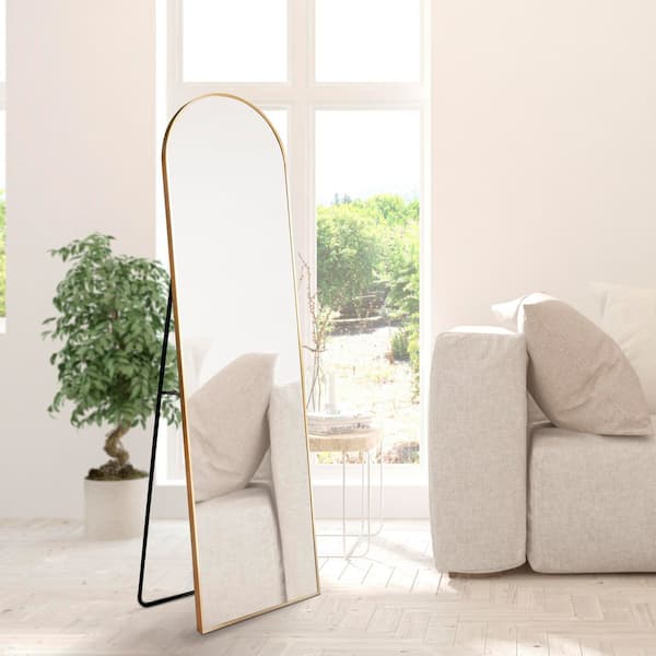 Adrian Gold 16 in. W x 59 in. H Large Arched Metal Framed Floor Full-Length Mirror