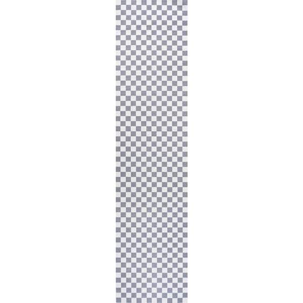 Ainsley Modern Cottage Checkerboard Washable Purple Gray/White 2 ft. x 8 ft. Runner Rug