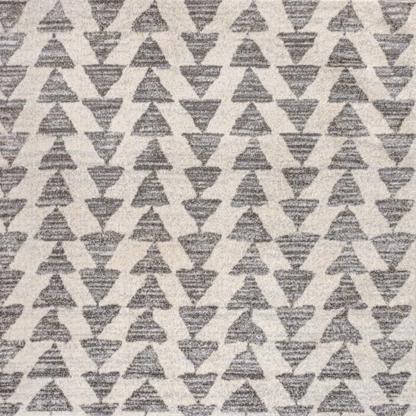 Aisha Moroccan Triangle Geometric Cream/Gray 4 ft. x 4 ft. Square Area Rug